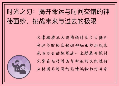 时光之刃:揭开命运与时间交错的神秘面纱,挑战未来与过去的极限