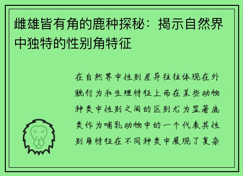 雌雄皆有角的鹿种探秘:揭示自然界中独特的性别角特征