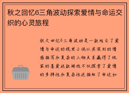 秋之回忆6三角波动探索爱情与命运交织的心灵旅程